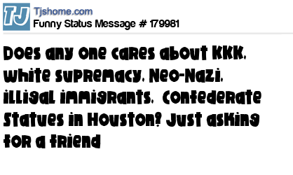 X Does any one cares about KKK, white supremacy, Neo-Nazi, illigal immigrants, Confederate Statues in Houston? Just asking for a friend