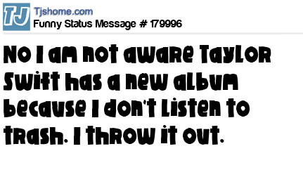 X says No I am not aware Taylor Swift has a new album because I don't listen to trash. I throw it out.