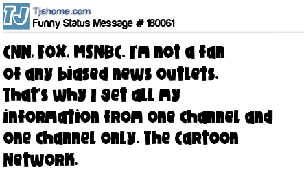 X says CNN, FOX, MSNBC. I'm not a fan of any biased news outlets. That's why I get all my information from one channel and one channel only. The Cartoon Network.