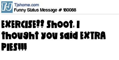X says EXERCISE?? Shoot, I thought you said EXTRA PIES!!!