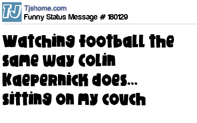 - # 207105 Once again I will Watching football this season the same way Colin Kaepernick does... sitting on my couch