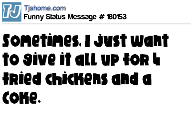 X says Sometimes, I just want to give it all up for 4 fried chickens and a Coke.