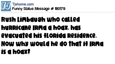 X is Rush Limbaugh who called hurricane Irma a hoax, has evacuated his florida residence. Now why would he do that if Irma is a hoax?