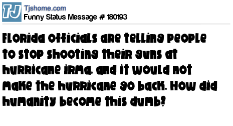 X is Florida officials are telling people to stop shooting their guns at hurricane irma, and it would not make the hurricane go back. How did humanity become this dumb?
