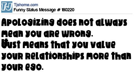 - # 90114 apologizing doesnt always mean ur wrong and the other person is right, just means you value ur realationship more then your ego.