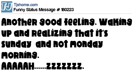 X is Another good feeling. Waking up and realizing that it's sunday and not monday morning. AAAAAH......zzzzzzz.