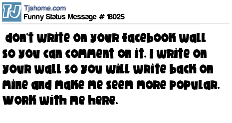 X don't write on your facebook wall so you can comment on it. I write on your wall so you will write back on mine and make me seem more popular. Work with me here.