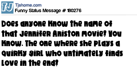- # 177676 Can anyone tell me the name of that Jennifer Anniston movie? You know, the one where she plays the quirky girl who untimately finds love in the end?
