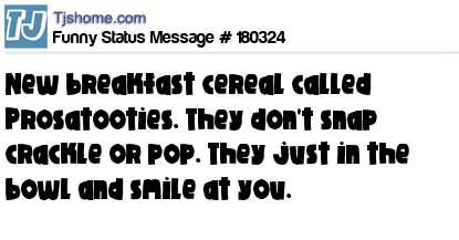 X is New breakfast cereal called Prosatooties. They don't snap crackle or pop. They just in the bowl and smile at you.