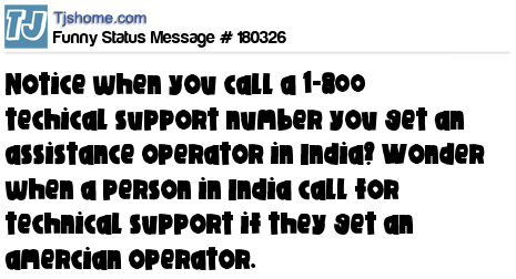 X is Notice when you call a 1-800 techical support number you get an assistance operator in India? Wonder when a person in India call for technical support if they get an amercian operator.
