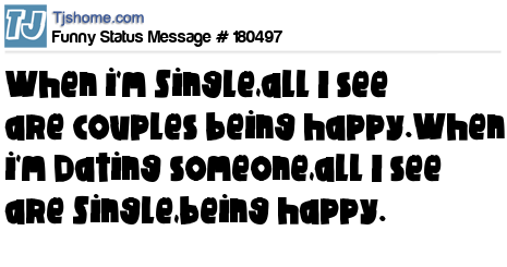 X  When i'm Single,all I see  are couples being happy.When i'm Dating someone,all I see are Single,being happy.