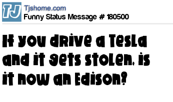 - # 167973 .... If you own a Tesla and it gets stolen .... Is it then called an Edison?