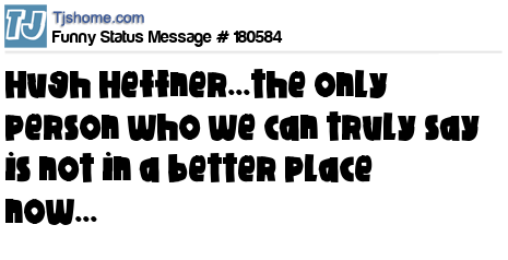 - # 127080 I bet when Hugh Hefner dies no one will say "He's in a better place now."