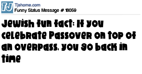 X Jewish fun fact: If you celebrate Passover on top of an overpass, you go back in time