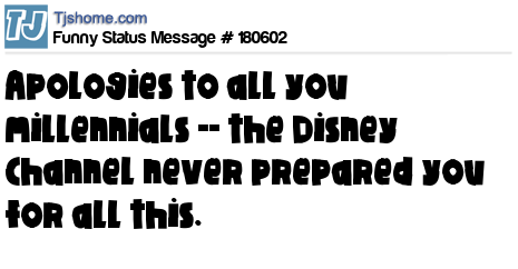 X says Apologies to all you millennials -- the Disney Channel never prepared you for all this.