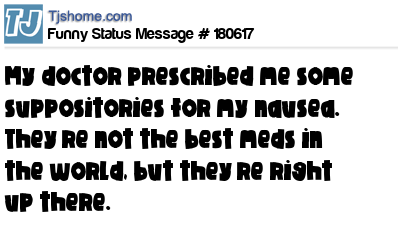 X says My doctor prescribed me some suppositories for my nausea. They’re not the best meds in the world, but they’re right up there.
