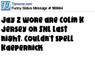 X says Jay Z wore are Colin K jersey on SNL last night. Couldn't spell  Kaepernick