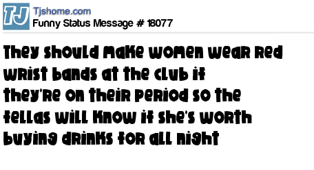 X says They should make women wear red wrist bands at the club if they're on their period so the fellas will know if she's worth buying drinks for all night