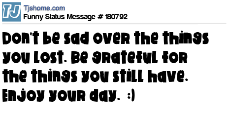 X is Don't be sad over the things you lost. Be grateful for the things you still have. Enjoy your day. :)