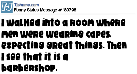 X says I walked into a room where men were wearing capes, expecting great things. Then I see that it is a barbershop.