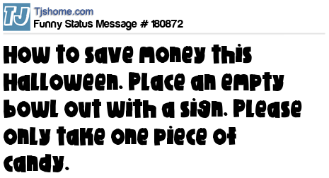 - # 180893 How to save money this Halloween. Place an empty bowl out with a sign in it. "I don't share my candy. Go away!"