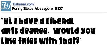 - # 165775 " No way....?!?! I majored in liberal arts too...!!! Btw....would you like fries with that.....???"