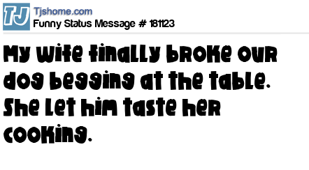 X is My wife finally broke our dog begging at the table. She let him taste her cooking.
