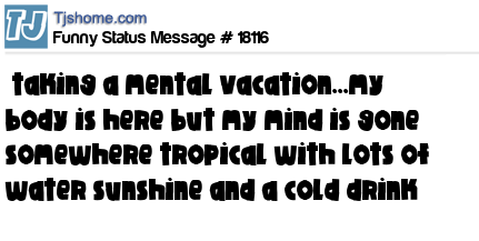X is taking a mental vacation...my body is here but my mind is gone somewhere tropical with lots of water sunshine and a cold drink