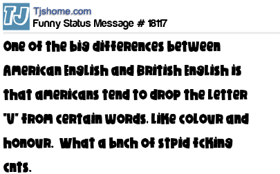 X is One of the big differences between American English and British English is that americans tend to drop the letter "U" from certain words, like colour and honour. What a bnch of stpid fcking cnts.