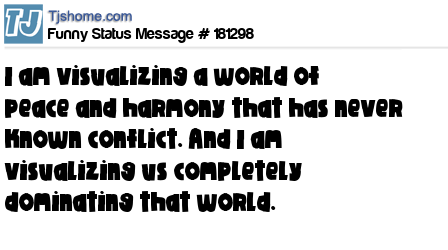 X says I am visualizing a world of peace and harmony that has never known conflict. And I am visualizing us completely dominating that world.