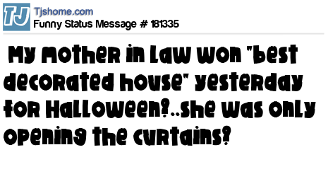 X is My mother in law won "best decorated house" yesterday for Halloween?..she was only opening the curtains?