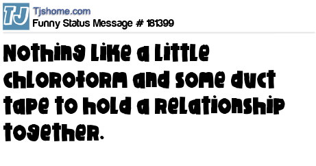 X says Nothing like a little chloroform and some duct tape to hold a relationship together.