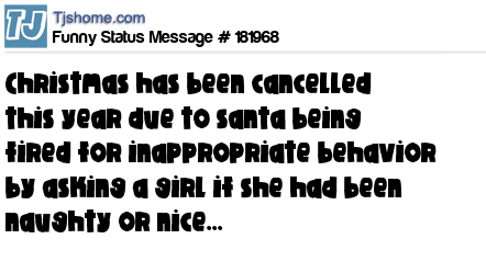 - # 181966 breaking news... sorry folks, christmas has been cancelled due to santa being fired for asking a girl if she had been naughty or nice...