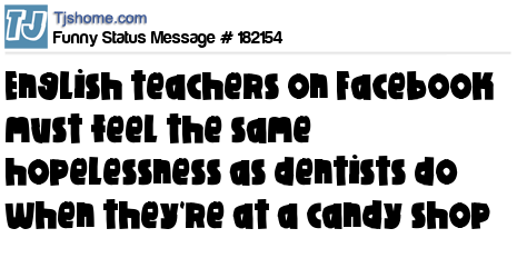 - # 141149 English teachers on Facebook must feel the same hopelessness as dentists do when they're at Walmart.