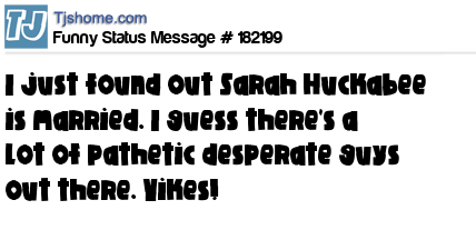 X is I just found out Sarah Huckabee is married. I guess there's a lot of pathetic desperate guys out there. Yikes!