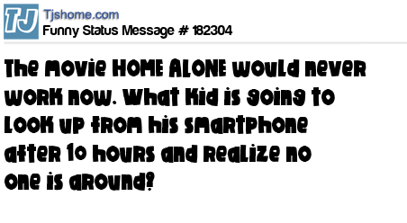 X says The movie HOME ALONE would never work now. What kid is going to look up from his smartphone after 10 hours and realize no one is around?