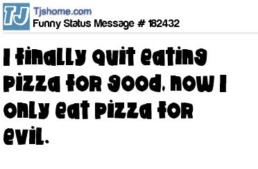 X says I finally quit eating pizza for good, now I only eat pizza for evil.