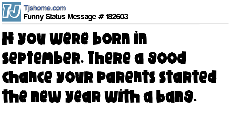 - # 188524 It's September...if you're Birthday is this month your parents started the new year with a bang...