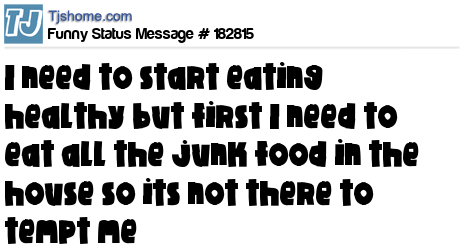 X says I need to start eating healthy but first I need to eat all the junk food in the house so its not there to tempt me