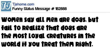- # 157481 Ladies are forever saying "all men are dogs", but what they fail to realize is that dogs are loyal as fu¢k if you treat them right.