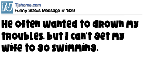 X says he often wanted to drown my troubles, but I can't get my wife to go swimming.