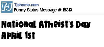 - # 165914 I would like to wish all the atheists out there a very happy holiday! Have a fantastic April Fool's Day!