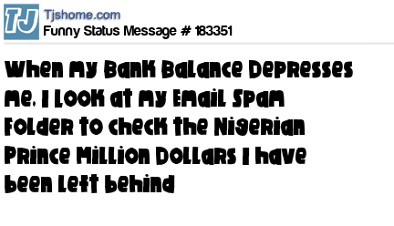 X says When my Bank Balance Depresses me, I Look at my Email Spam Folder to check the Nigerian Prince Million Dollars I have been left behind