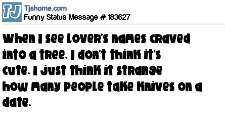 - # 149129 When I see names carved into a tree I don’t think it’s cute, I just think its strange how many people take knives on a date.