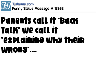 X says Parents call it "Back Talk" we call it "explaining why their wrong"....