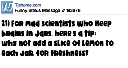 X says 21) For mad scientists who keep brains in jars, here’s a tip: why not add a slice of lemon to each jar, for freshness?
