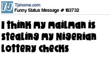 - # 156614 I think my mailman is stealing my Nigerian lottery checks.
