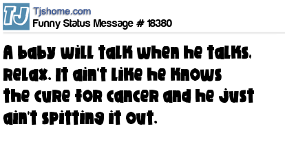 X is A baby will talk when he talks, relax. It ain't like he knows the cure for cancer and he just ain't spitting it out.