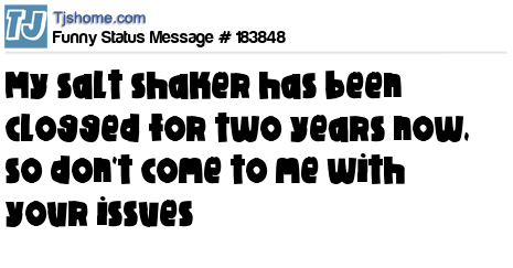 X says My salt shaker has been clogged for two years now, so don't come to me with your issues