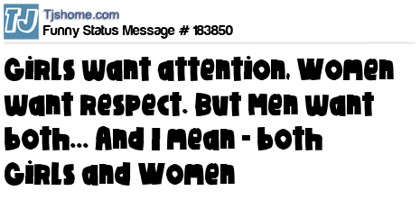 X says Girls want attention, Women want respect. But Men want both... And I mean - both Girls and Women